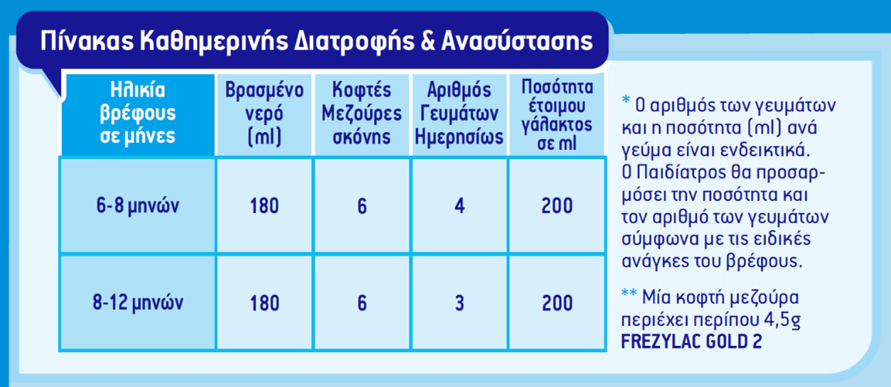 Πρότυπο παρασκευής : 90 ml βρασμένο νερό + 13.5 gr σκόνη Frezylac για 100 ml έτοιμο βρεφικό γεύμα.